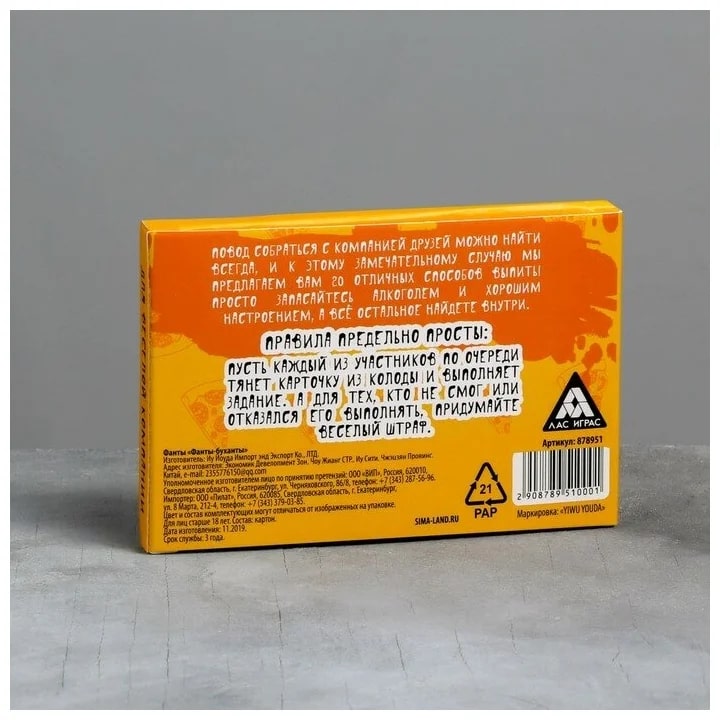 Купить игра для компании "фанты буханты" 20 карт от 100 руб. с доставкой до пункта выдачи в Омутнинске. Интернет магазин ДекаМаркет. Оплата при получении.